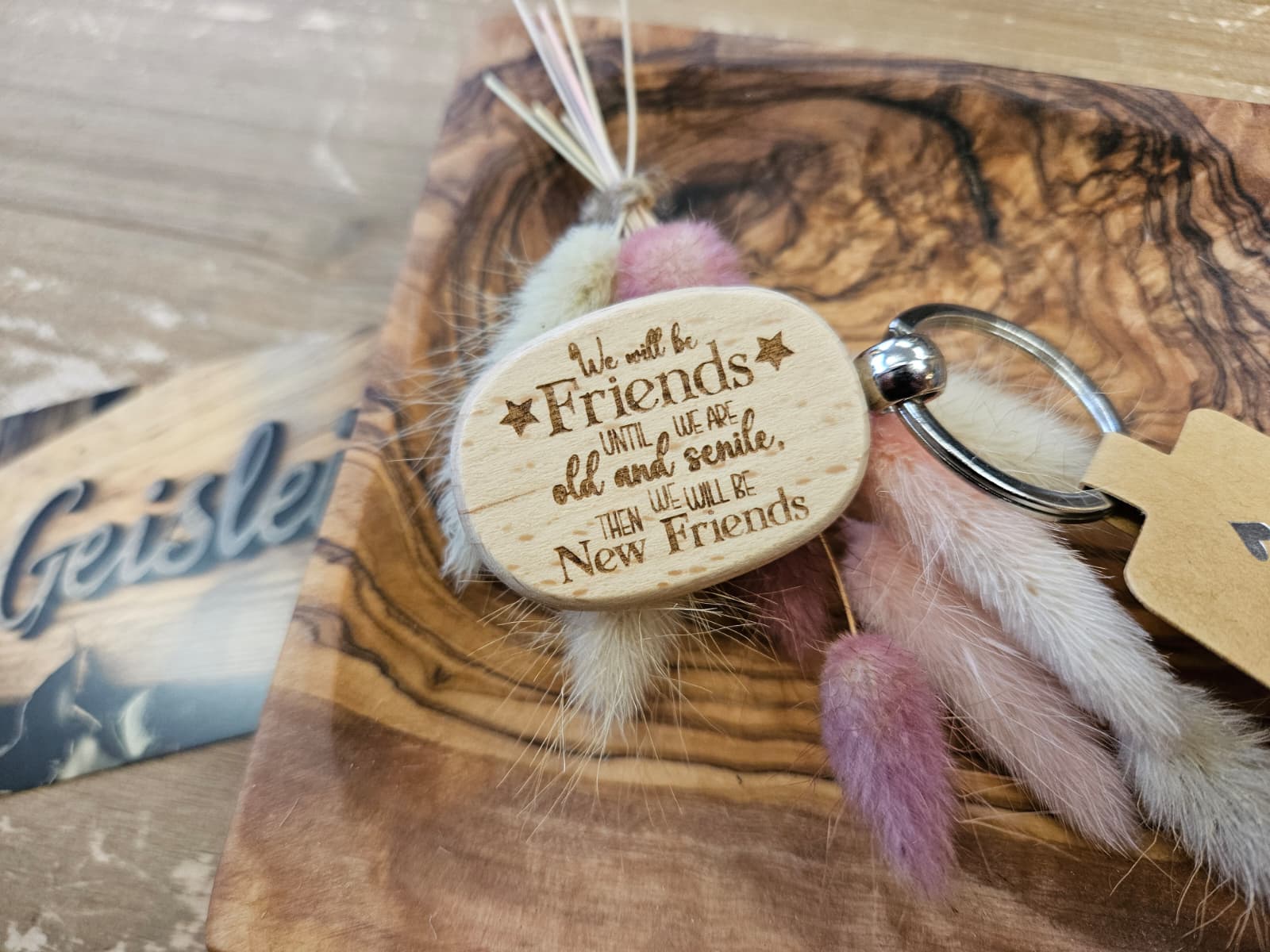 Hübscher lasergravierter Schlüsselanhänger aus Holz