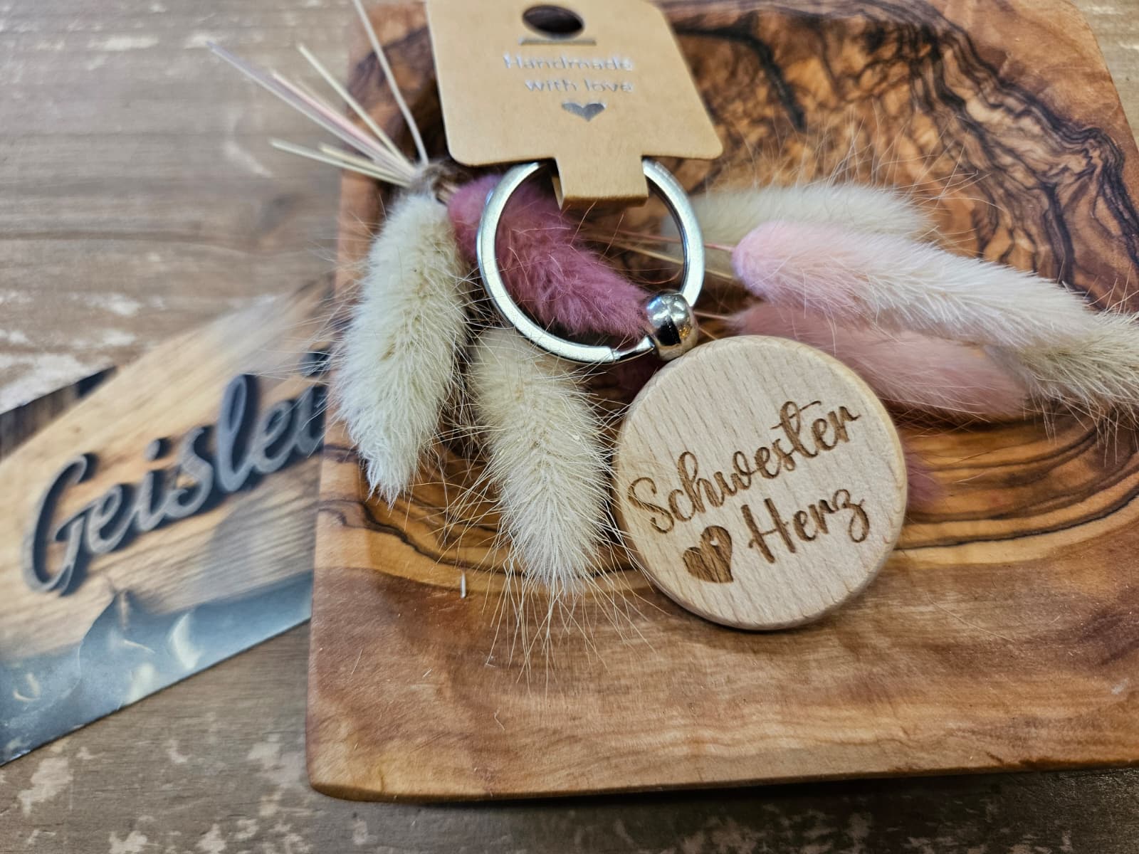 Hübscher lasergravierter Schlüsselanhänger aus Holz